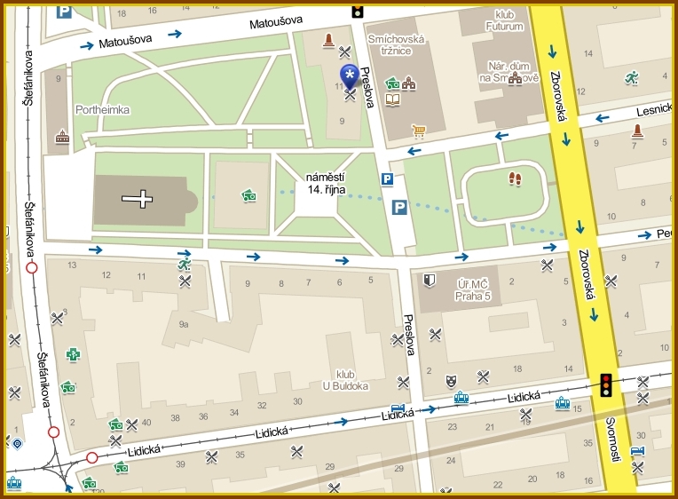 Restaurace, též známá jako U Kozla - velice příjemné posezení naproti Smíchovské tržnici.
